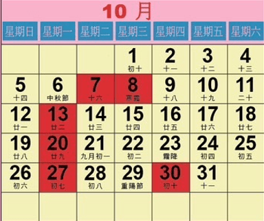 市場休市:10/6(中秋)、10/7、10/8、10/13、10/20、10/27、10/30
